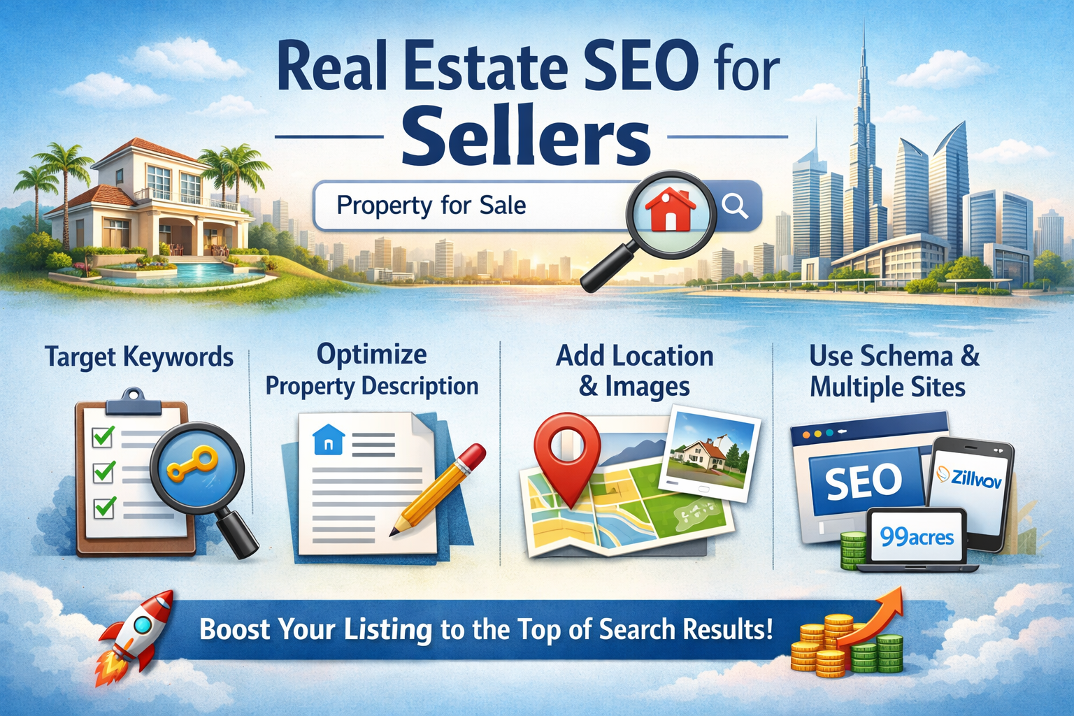 Real estate SEO is no longer optional—it’s a powerful tool for sellers who want their property to stand out in a crowded market. By optimizing keywords, creating detailed descriptions, improving images, and focusing on local SEO, sellers can dramatically increase listing visibility and attract serious buyers.